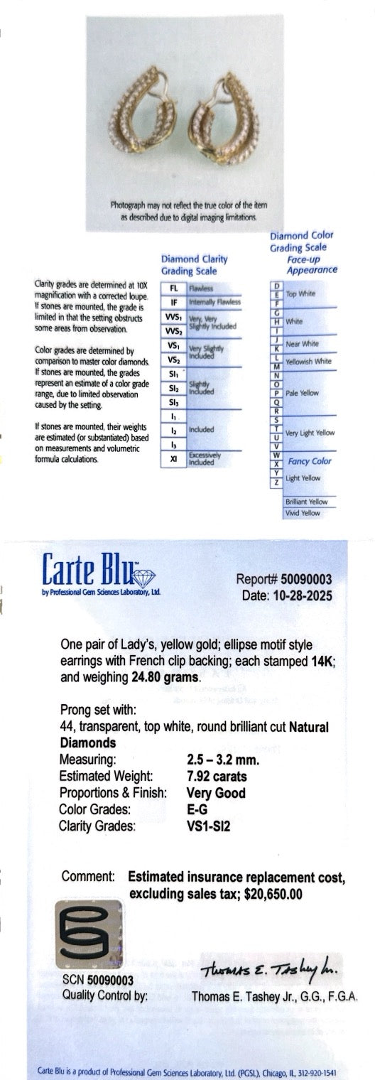 Vintage 7.92 Ctw. Diamond Forward-Facing Hoop Earrings